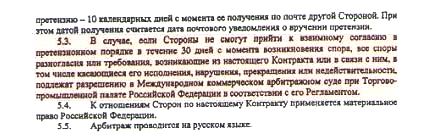 Проте за умовами нинішнього договору зробити це буде надзвичайно складно. У контракті є розділ, що стосується майбутнього арбітражу. Згідно із ним, сторони у випадку непорозуміння можуть звертатися лише до Комерційного арбітражу Російської торговельно-промислової палати.
