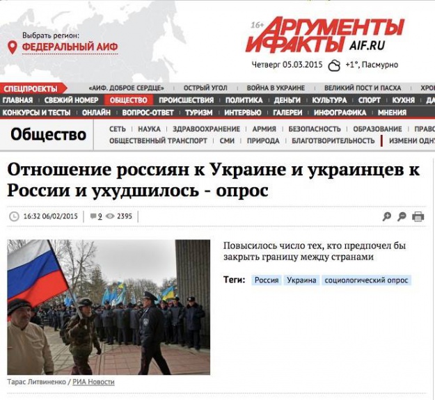 Но ведь многочисленные исследования, регулярно проводимые различного рода информационно-аналитическими учреждениями РФ, свидетельствуют о стремительном ухудшении отношения россиян к украинцам, и это позволяет сделать вывод о том, что спрос на войну с Украиной формирует российский народ.