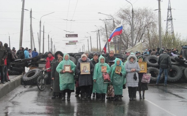 | Бабушек с иконами ставили впереди, чтобы украинские военные не открывали огонь. Фото dumskaya.net |