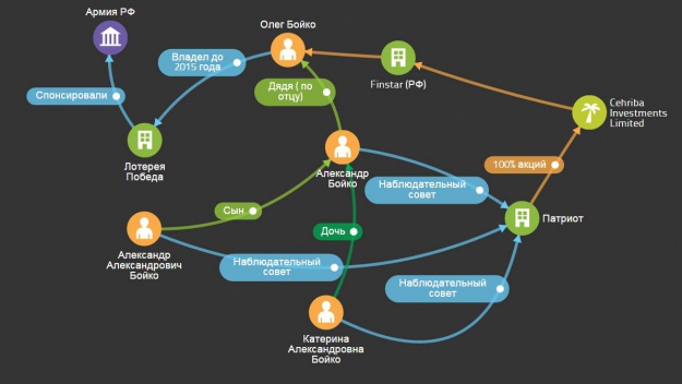 100% акций "Патриота" принадлежат кипрской Cehriba Investments Limited. Эта компания-прокладка входит в инвестиционный холдинг Finstar российского миллиардера Олега Бойко.