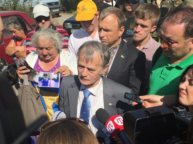 | Мустафа Джемилев дает интервью журналистам перед тем, как перекрыть поставки украинских товаров в Крым. Фото Айдера Муждабаева |