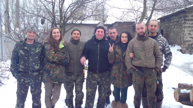 | Вуглегірськ, 17 січня. Разом із волонтерами на одному із постів. (Тут і далі усі фото - з особистого архіву Романа Боровньова) |