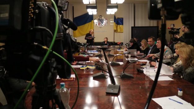 Здание комиссиии ночью охраняли несколько десятков сотрудников милиции и нацгвардейцы с боевым оружием. Они же дежурили в коридоре у зала заседаний.