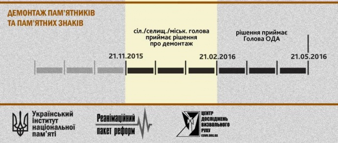 Він передбачає, що всі повноваження від органів місцевої влади переходять до виконавчих органам влади. Тобто якщо міські та сільські голови не виконали закон, то за перейменовування вулиць та демонтаж пам'ятників беруться обласні державні адміністрації.