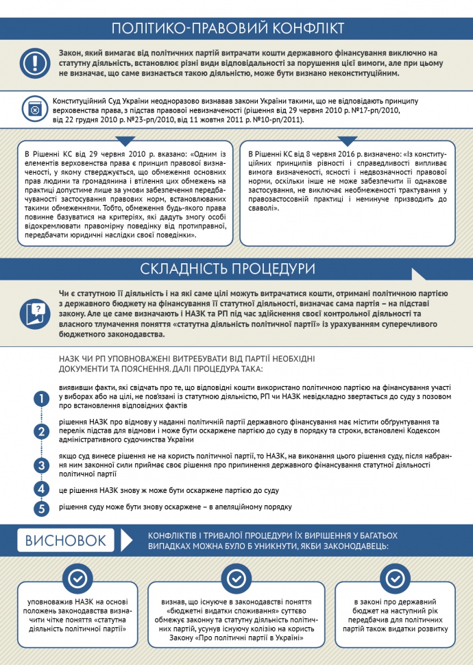 Але те ж саме визначають і НАЗК та РП під час здійснення своєї контрольної діяльності за "статутною діяльністю політичної партії" – за власним тлумаченням цього поняття і з урахуванням суперечливого бюджетного законодавства.