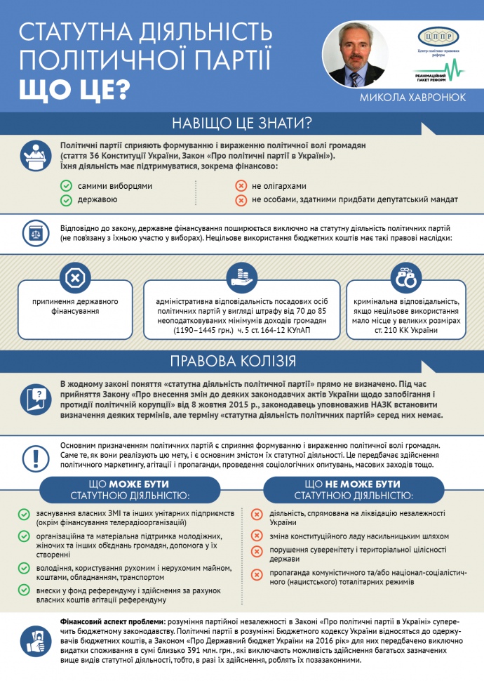 В жодному законі це поняття – "статутна діяльність політичної партії" – прямо не визначено.