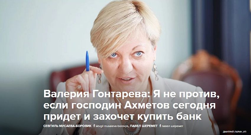 Валерия Гонтарева: Я не против, если господин Ахметов сегодня придет и захочет купить банк