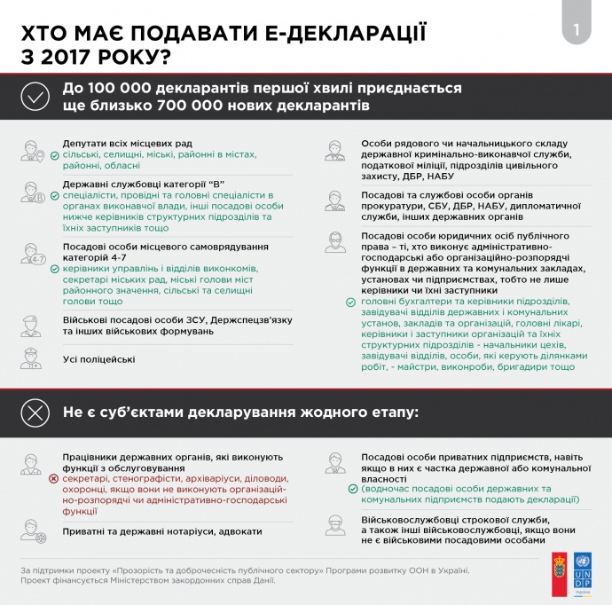 З 1 січня 2017 року стартував другий етап, з якого е-декларації подаватимуть усі публічні службовці України.