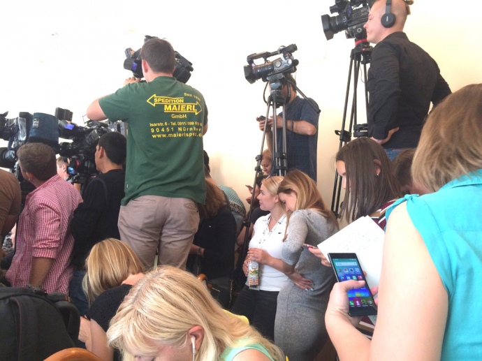 У цей момент журналісти почали голосно скаржитись Пинзенику, що секретаріат не пускає їх до зали, поки не прийдуть члени комітету.