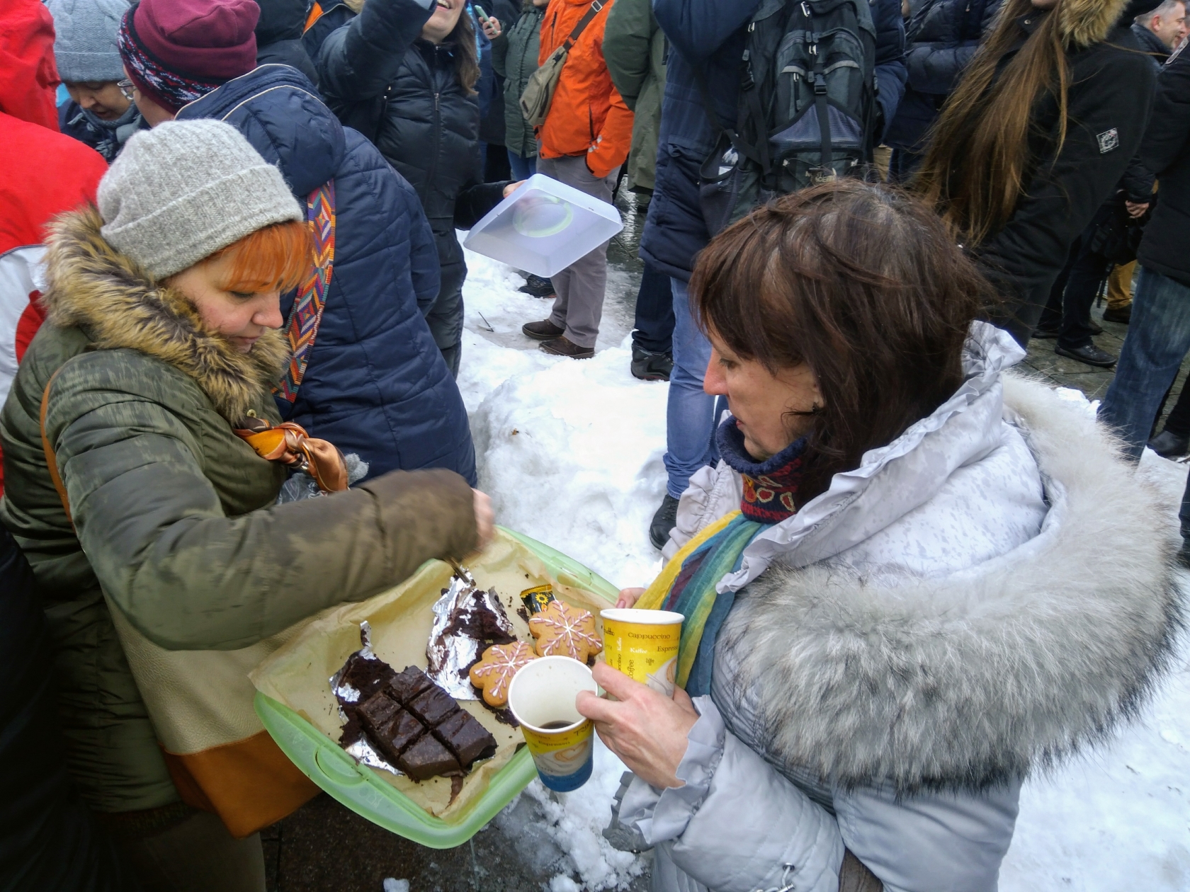 – Вообще-то, это очень круто, – поясняла женщина с блаженной улыбкой. – Вот так вот просто взять, собраться, пообниматься, поговорить. Мне это очень напомнило атмосферу, которая была во время Оранжевой революции.