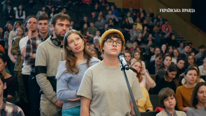 Самого гостя Могилянка зустріла оваціями, а провела співом. Він, роздаючи автографи, радив "триматися правди".