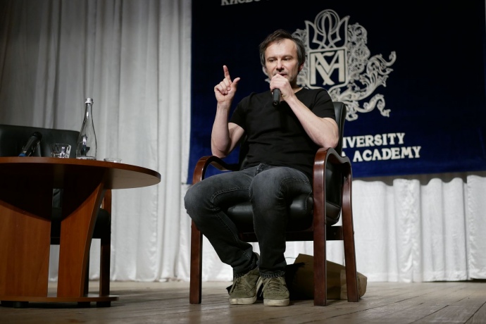 Під час творчої паузи Вакарчук майже не з’являвся в публічному просторі. Однак зараз він приїхав до України і вирішив провести відкриту зустріч зі студентами та прихильниками в Києво-Могилянській академії.