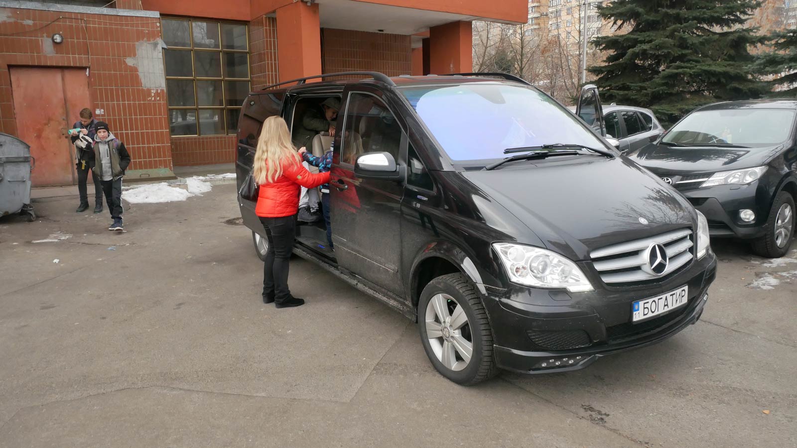 Чорний фургон Mercedes в тюнінгу Brabus з табличкою "БОГАТИР" замість номерів. О 10:45 все сімейство Вірастюків їде в Coffelaktika – улюблену кав'ярню на Саксаганського.