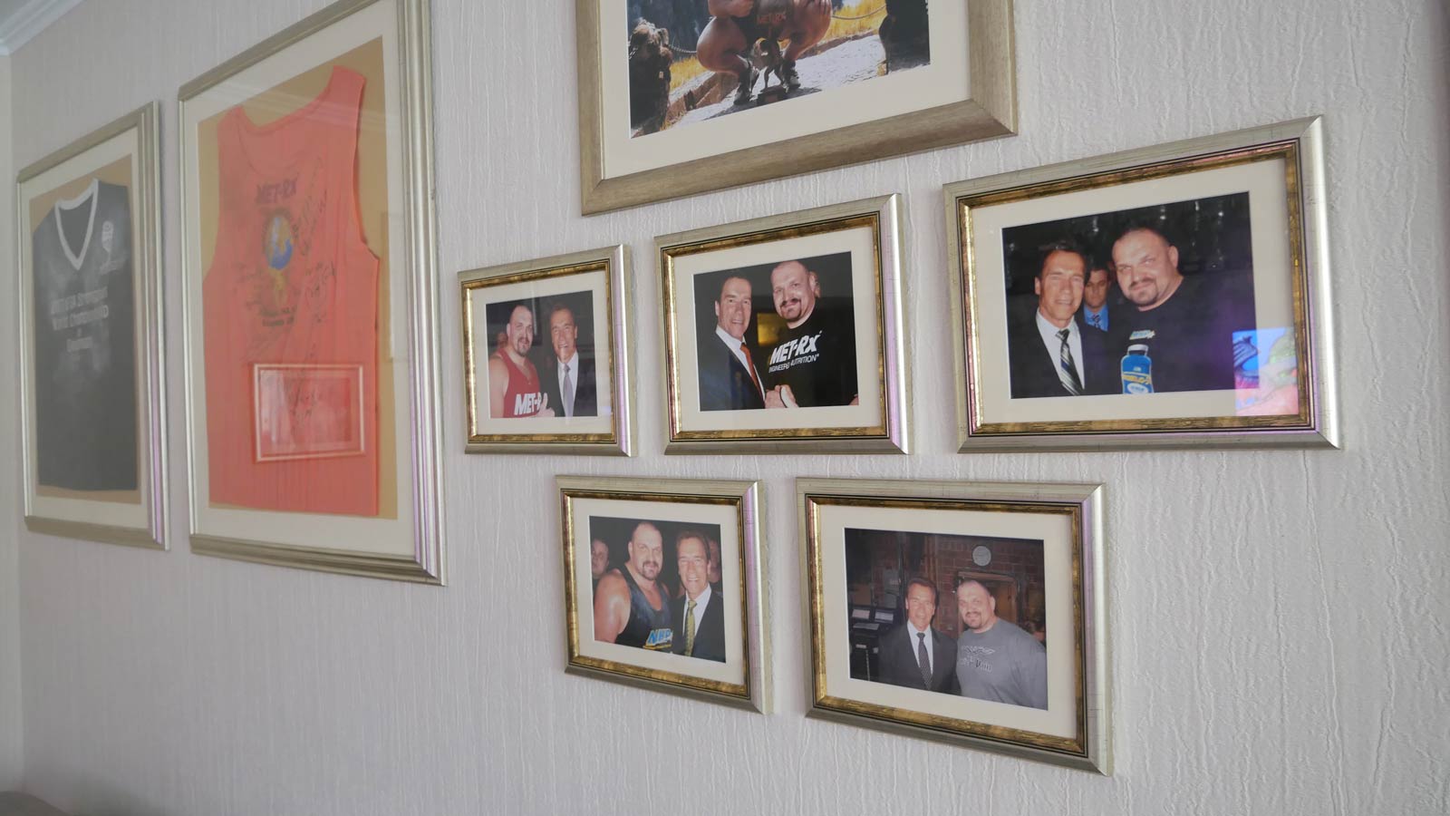 – Ці фото з турніра Arnold Strongman Classic у різні роки, – продовжує він екскурсію. – На них, так би мовити, тенденція старіння Арнольда Шварценеггера (усміхається)... Це не постановочна американська посмішка. Ось такий він і є в житті. З почуттям гумору у нього все нормально.