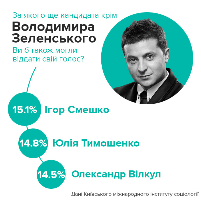 В результаті вийшло, що найбільше голосів Зеленського може перейти до Юлії Тимошенко, Ігоря Смешка та Олександра Вілкула.