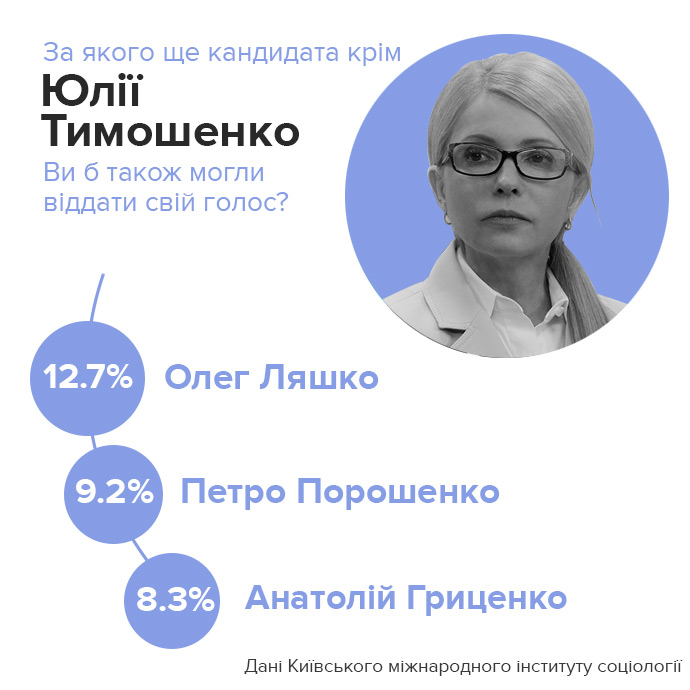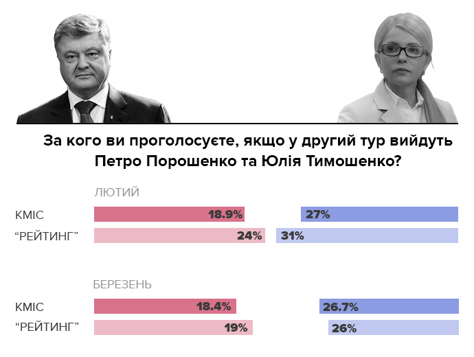 Тимошенко перемагає Порошенка – 26% проти 19%.
