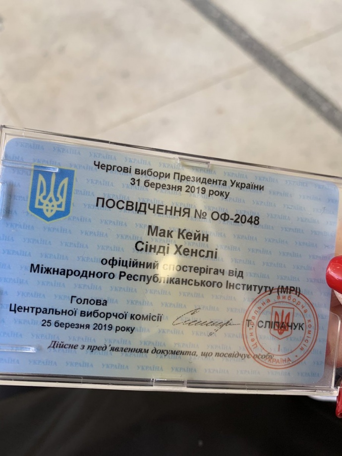 Вдова американського сенатора-республіканця Джона Маккейна Сінді прилетіла в Україну, щоб спостерігати за виборами президента. Вона представляє Міжнародний Республіканський Інститут.