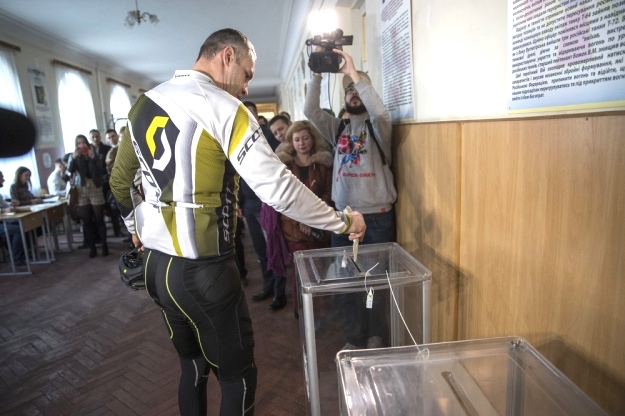 Мер Києва Віталій Кличко приїхав на вибори президента на велосипеді. Він проголосував на дільниці у Київському військовому ліцеї ім. Івана Богуна.