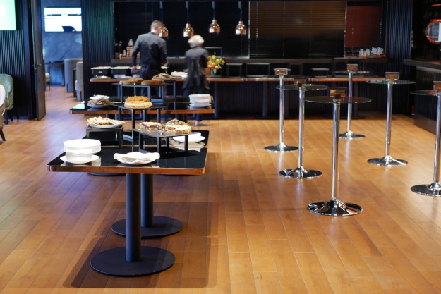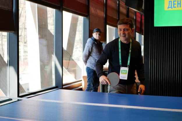 На вході – кілька охоронців і металодетектор. Людей поки мало – лише кілька журналістів. Пригощають печивом, піцою, соками. Бажаючі можуть пограти в настільний теніс, футбол. Можливістю розважитися скористався і сам Зеленський.