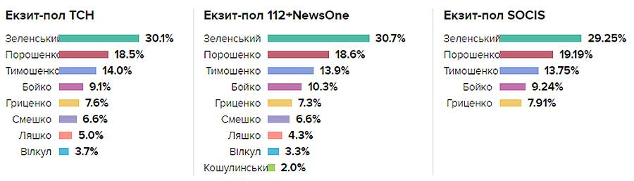 Зеленський попереду, Порошенко другий, Тимошенко третій. Прогноз екзит-полів підтверджується.