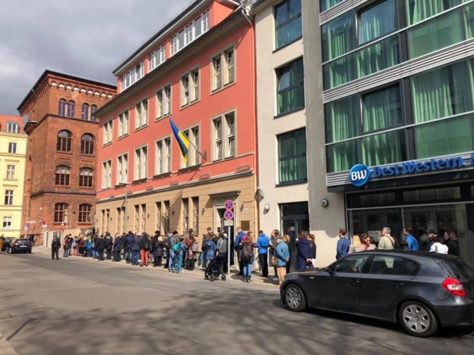 На виборчих дільницях у Німеччині, яка є рекордсменом за кількістю дільниць за кордоном, утворилися довгі черги.