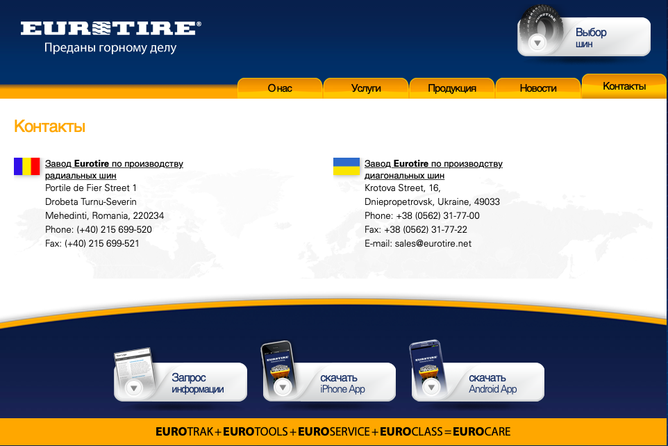У виписці з державного реєстру Румунії вказана адреса сайту компанії "EURO TYRES MANUFACTURING SRL" – www.eurotire.net. На цьому ж сайті вказана й адреса української філії – "Українського заводу понадвеликогабаритних шин". Згідно з витягом із українського реєстру нерухомого майна, компанія володіє і приміщенням заводу, розташованого за цією адресою.