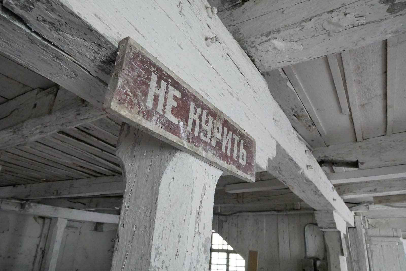 По всем помещениям старой мельницы установлены старые советские таблички с напоминанием о технике безопасности