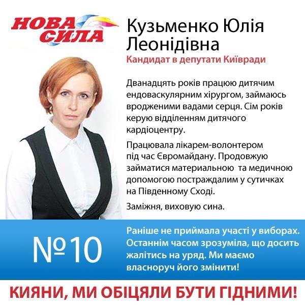 Юлія Кузьменко – 40-річна лікар-хірург і волонтер. Вона працює у Центрі дитячої кардіографії та кардіохірургії, де очолює відділення рентгенангіографії та ендоваскулярної хірургії. Має ступінь кандидата медичних наук та пише докторську дисертацію.