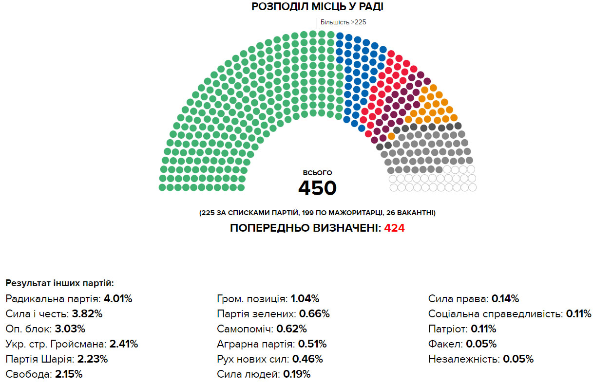 21 липня в Україні відбулися позачергові вибори до Верховної Ради, за їх результатами до парламенту потрапило 5 політичних партій.