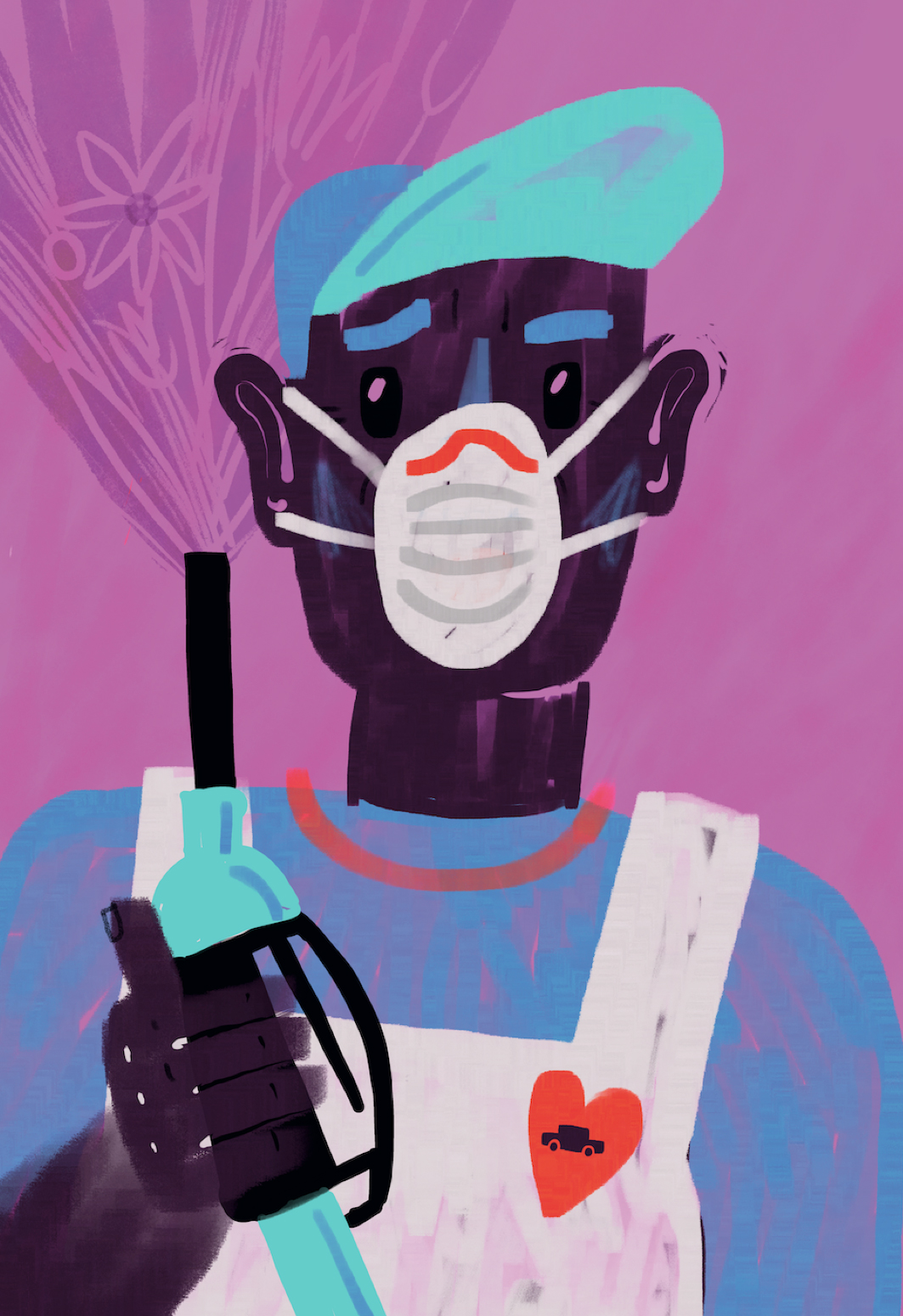Коли в березні ввели карантин, у мене була паніка. Зразу думала поїхати додому в село. Але потім вирішила, що не можу кинути роботу. Все одно хтось повинен підтримувати порядок, навіть якщо людей в офісах небагато. Рукавички, маска і вперед.