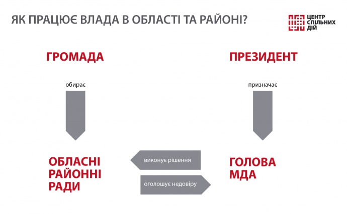 До слова, влада на Банковій має співпрацювати з представниками територіальних громад району та області. Місцеві ради можуть вимагати звіти від голів державних адміністрацій, прокурорів чи керівника органу поліції, оскаржувати в судах акти президента, органів виконавчої влади, які обмежують права територіальних громад.