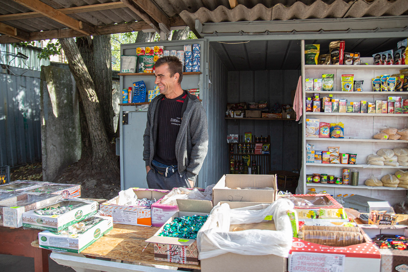 Из старенькой визжащей кофемашины продавец Лариса выдавливает темную, как херсонский чернозем, жижу. Стаканчик американо – всего 5 гривень. И это – не единственная хорошая новость. По словам женщины, коронавируса в Чулаковке нет.