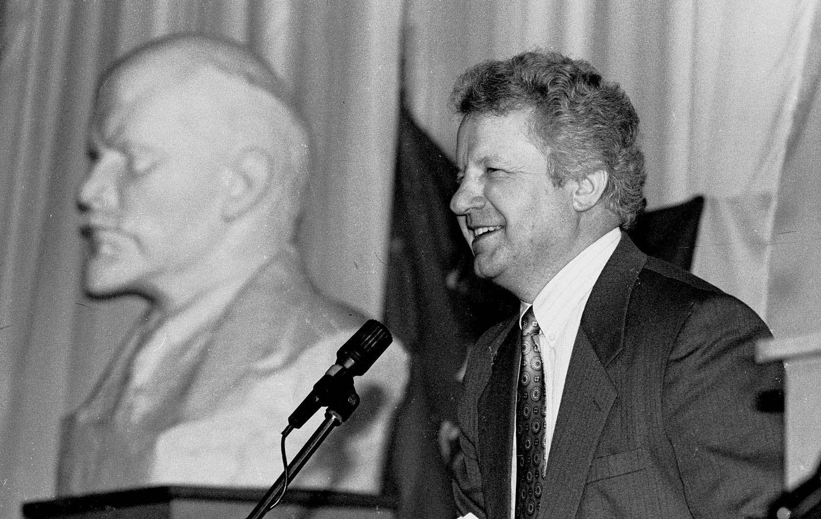 Леонид Кучма и глава его администрации Дмитрий Табачник. Первая пресс-конференция Кучмы — президента Украины. Киев, Украинский дом, 1994 год