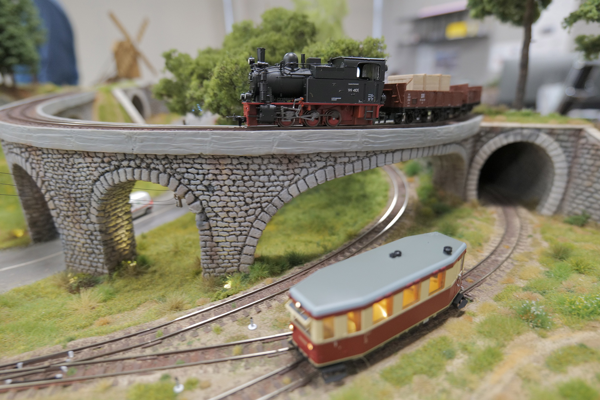 Железнодорожные станции Гайворон и Ивано-Франковск, шахта, электростанция. Городской трамвай. Олесский замок. Виадук в Ворохте, взращенный на 3D-принтере. Мост в Яремче и туннели. Река с настоящей водой, плотиной и мельницей. До ста единиц подвижного состава. Все это вместит детище моделистов с Татарки.