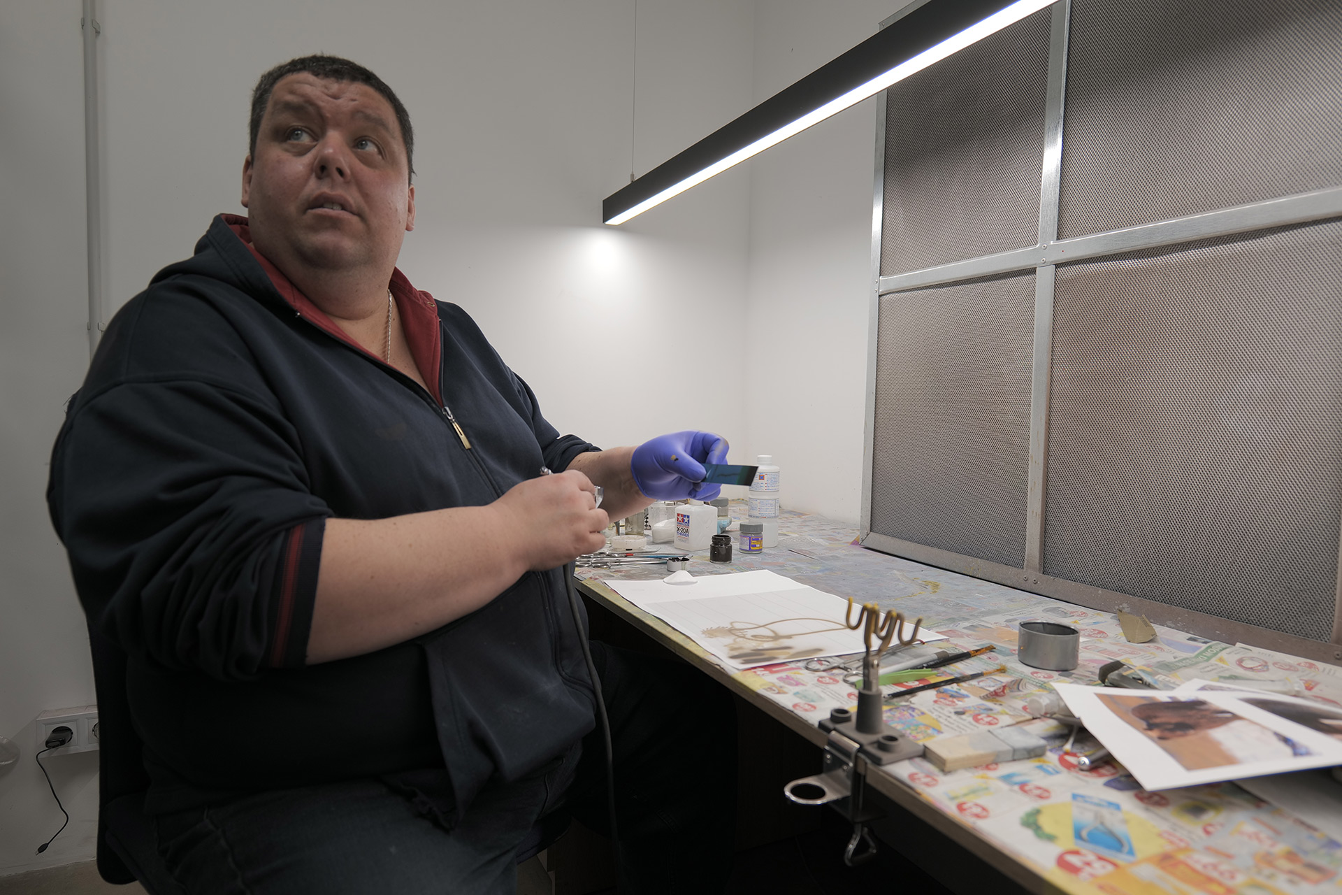 Короткостриженный мужчина 1965 года рождения. Коренастый коренной киевлянин Дмитрий. Его присутствие в мастерской – лучший ответ на вопросы вроде: "Вы это серьезно? В стране война, COVID-19, а вы в игрушки играете!".