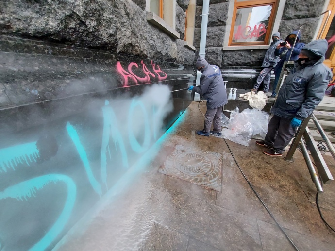 Субботний митинг на Банковой, в ходе которого сторонники активиста Сергея Стерненко разрисовали здание Офиса президента нелицеприятными фразами, имел все шансы утонуть в украинской информационной пучине.