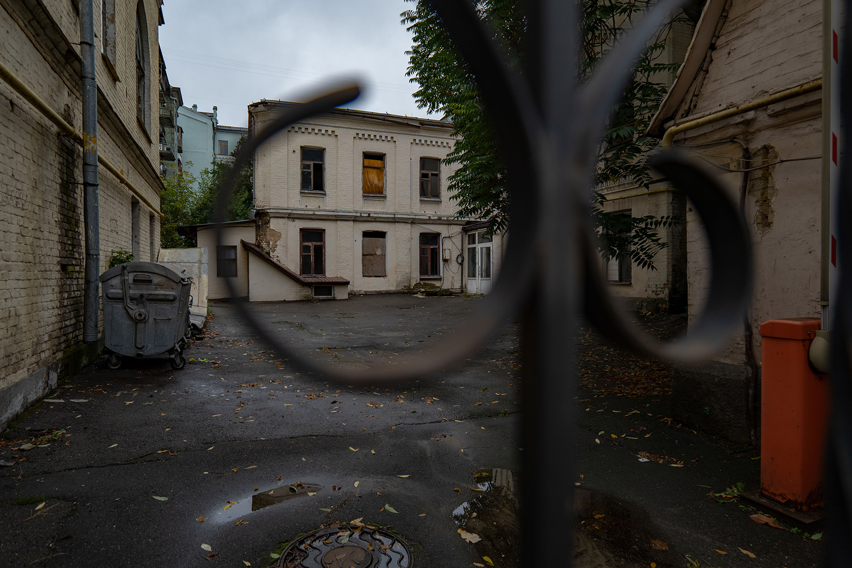 Это здание у ботсада олицетворяет тот фасад независимой Украины, который давно нужно привести в порядок: разбитые окна, исписанные граффити стены, мусор, окурки, пустые стаканчики для кофе, объявления о подработке и политическая реклама, оставшаяся после выборов в 2019-м – "Журавлев – мой президент".