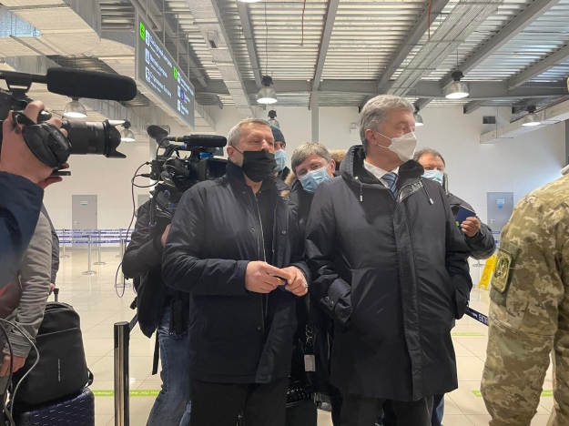 В аеропорту співробітники Державного бюро розслідувань намагалися вручити Порошенку повістку в суд. Але експрезидент відмовився отримувати докуммент.