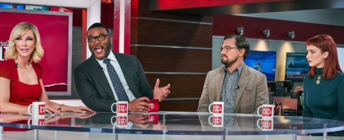 – "Не смотрите вверх" – о том, что сегодня ценятся не высказывания, над которым надо подумать, а информационный треш. Он у всех на слуху. Или его легко сделать таким, чтоб он стал у всех на слуху.