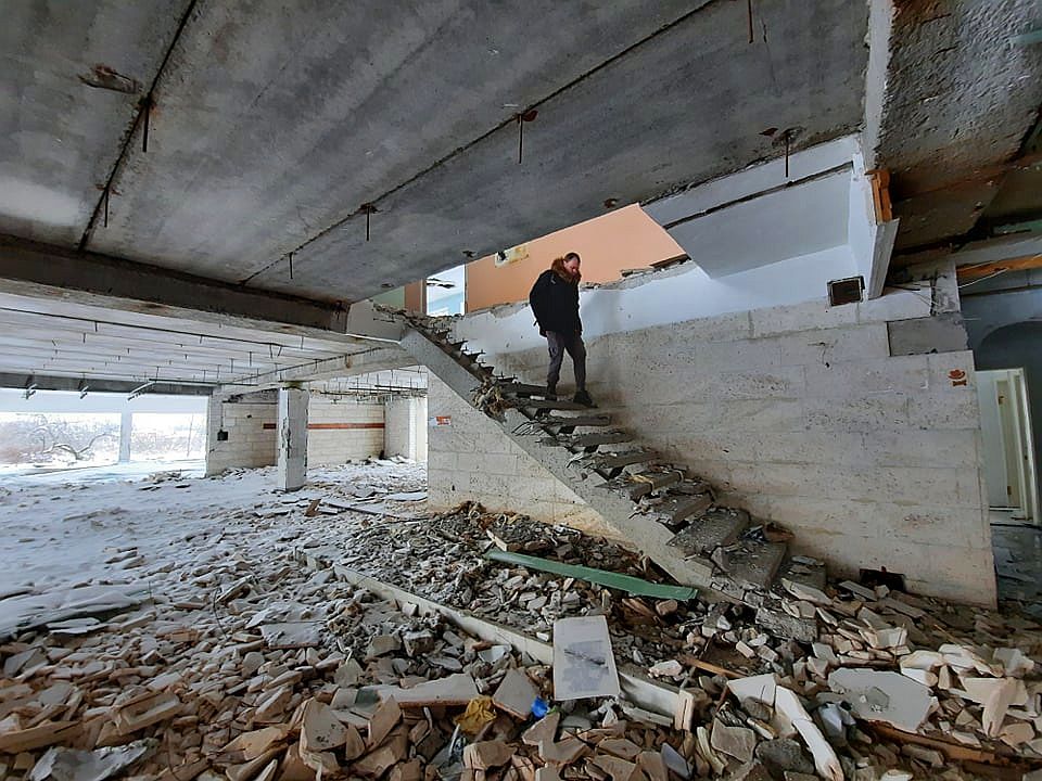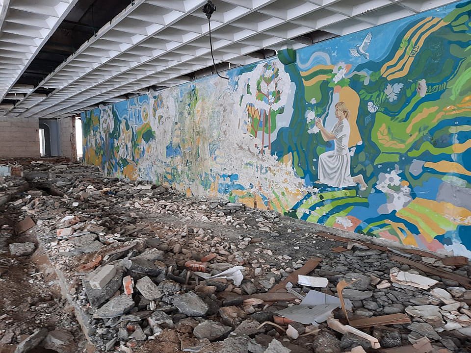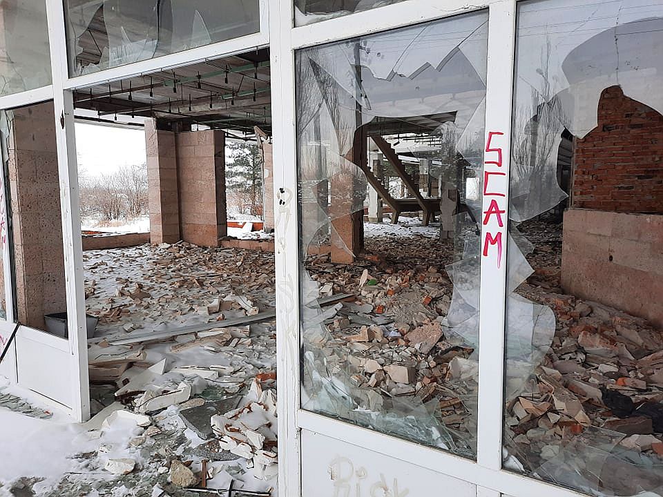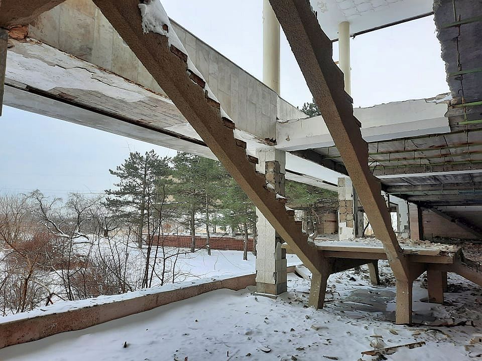 После заката ПрАт "Приазовкурорт" и передачи его недвижимости Фонду госимущества, здание, которое уже простаивало без дела, за год превратили в руину. Уносили последнее: окна, двери, плитку, линолеум, паркет.