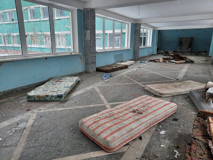 На снегу редкие следы бродячих собак и изредка человеческие – они принадлежат смурным, молчаливым мужчинам, ищущих в разрушенных корпусах то, что еще не успели растащить.
