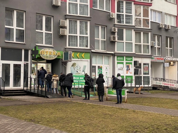 Українці закуповують їжу, ліки, знімають готівку. У Києві в супепрмаркетах, аптеках і біля банкоматів стоять черги.