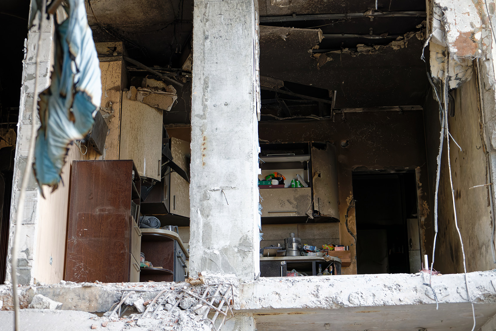 Ми заходимо на той самий 4-ий поверх будинку. Тут сильно відчувається, що 8 загиблих і 20 постраждалих – це не просто цифри, до яких українці починають звикати за два місяці війни.