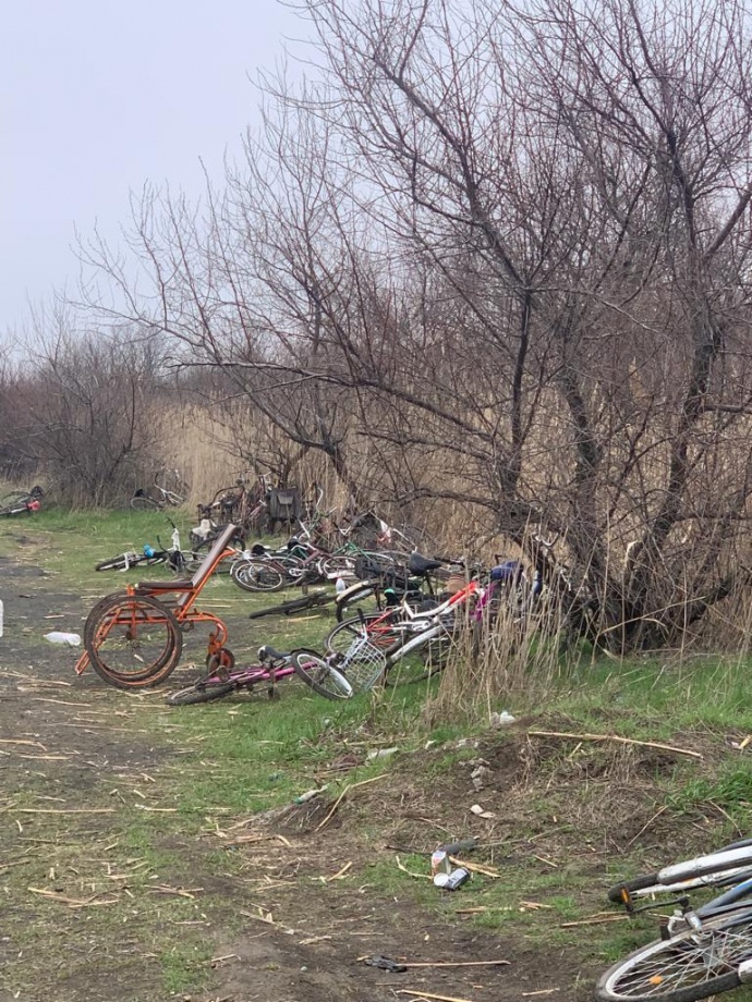 Сотні велосипедів залишили мешканці Херсонської області на одному з криворізьких блокпостів. Тут вони пересідали на автобуси, тікаючи сюди від окупації.