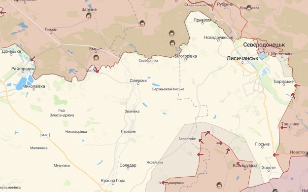 Карта Deep State є приблизною й частково неточною, за даними УП, українські військові контролюють більшу частину Сєвєродонецька, ніж показано на мапі.