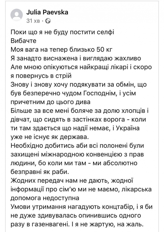 ГУР постійно тримає це на контролі, з деякими з них є зв’язок, і процес щодо їх звільнення не зупиняється ні на годину. Я дуже сподіваюсь, що наразі він ввійде в свою активну фазу, і ми почнемо повертати наших героїв до України".