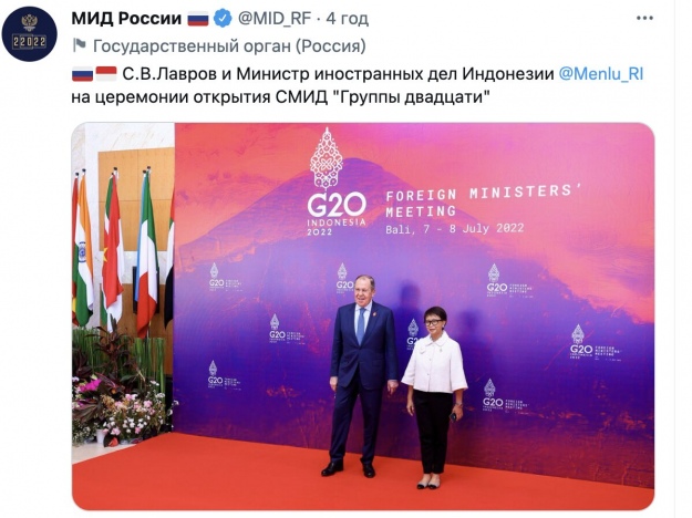 Керівники МЗС інших країни "великої сімки" не прийшли на вечерю з колегами по G20 у Індонезії. Не було традиційного фото зустрічі – саме через присутність Лаврова.