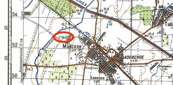 На доступній в мережі мапі 1989 року у Майському можна побачити об’єкт, позначений як "СТФ" – свинотоварна ферма.