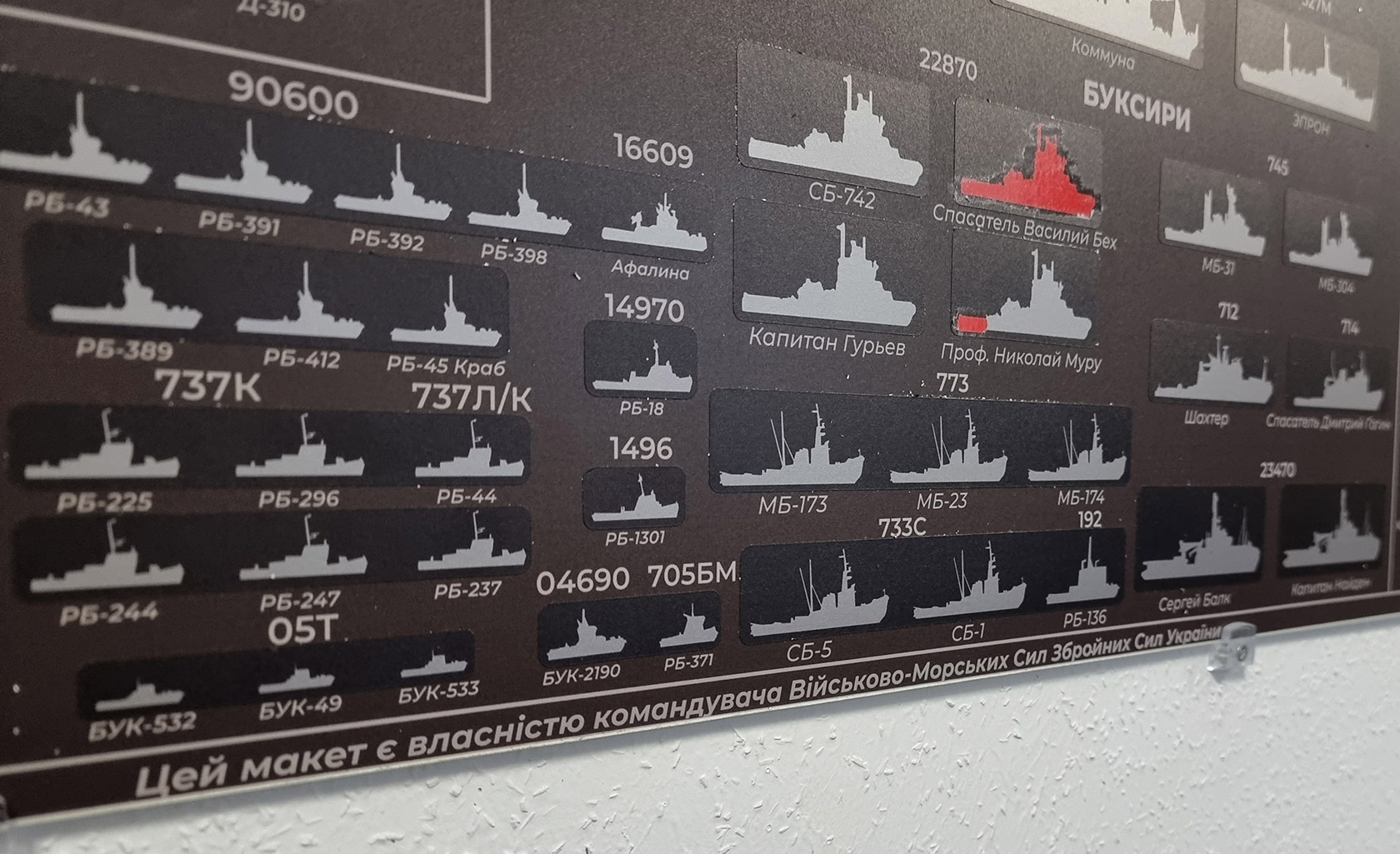 Але з особливим інтересом віцеадмірал показує свою скретч-карту, де зображений весь склад ЧФ РФ. Після кожної вдалої операції на морі Неїжпапа відзначає на цій карті втрати росіян: якщо корабель пошкоджено – срібну фарбу з нього стирають частково в місці ураження, якщо ж судно знищене – воно перетворюється на повністю червону пляму. Як, наприклад, та ж "Москва" чи підводний човен "Ростов-на-Дону".