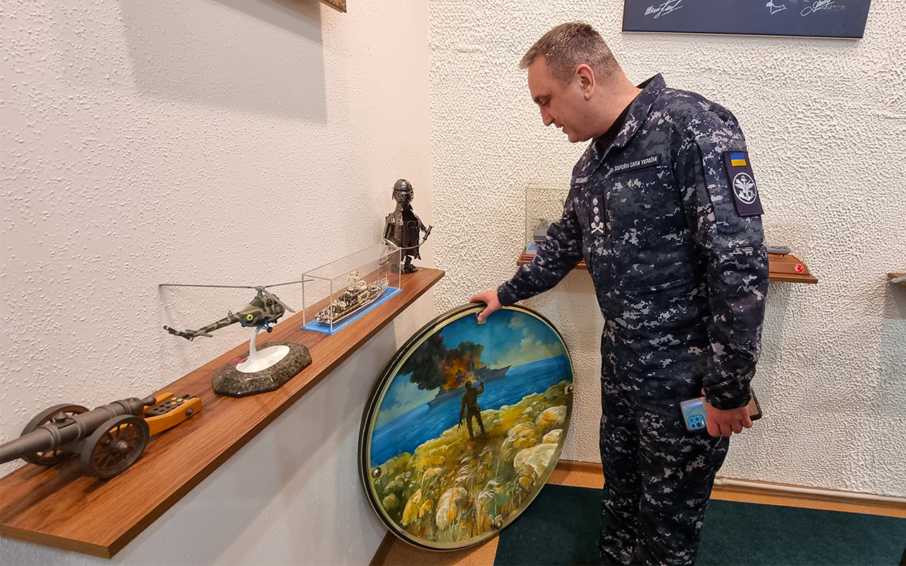 Саме це приміщення нічим особливим не вирізняється, але в його кутках і на стінах знаходяться десятки артефактів, за якими загалом можна описати війну України за своє право називатися й бути морською державою.